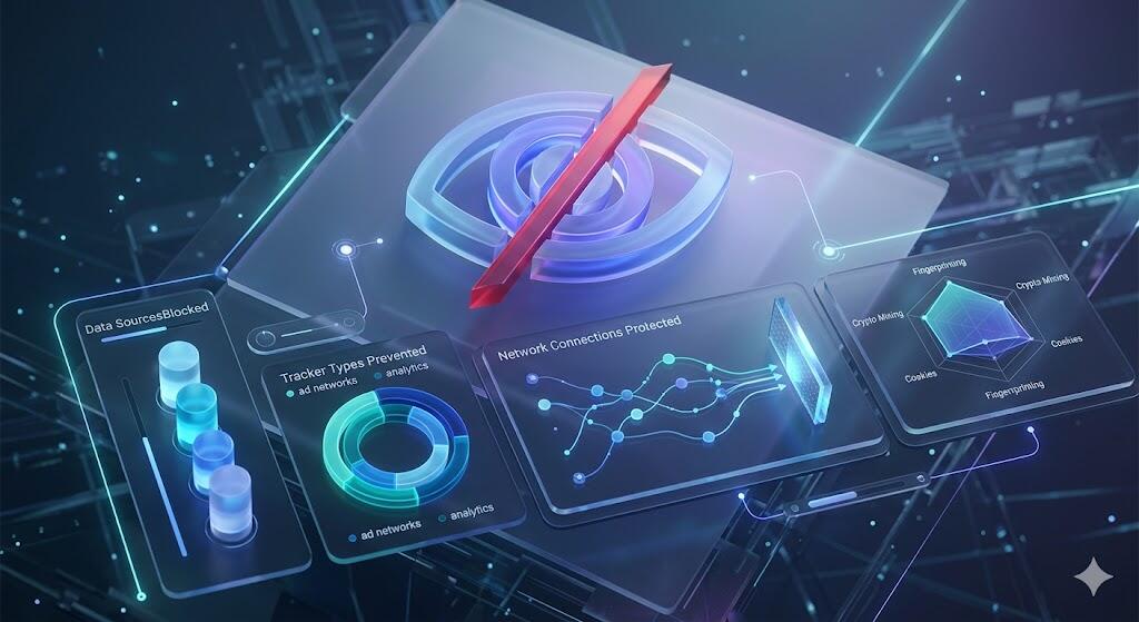 Personvern: Stopper informasjonskapsler og trackere fra å følge din digitale aktivitet på tvers av domener.